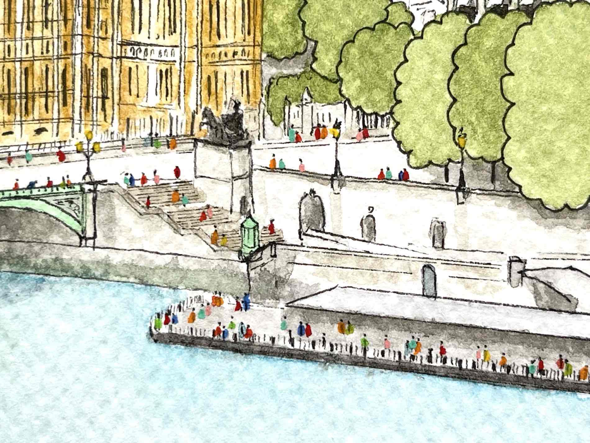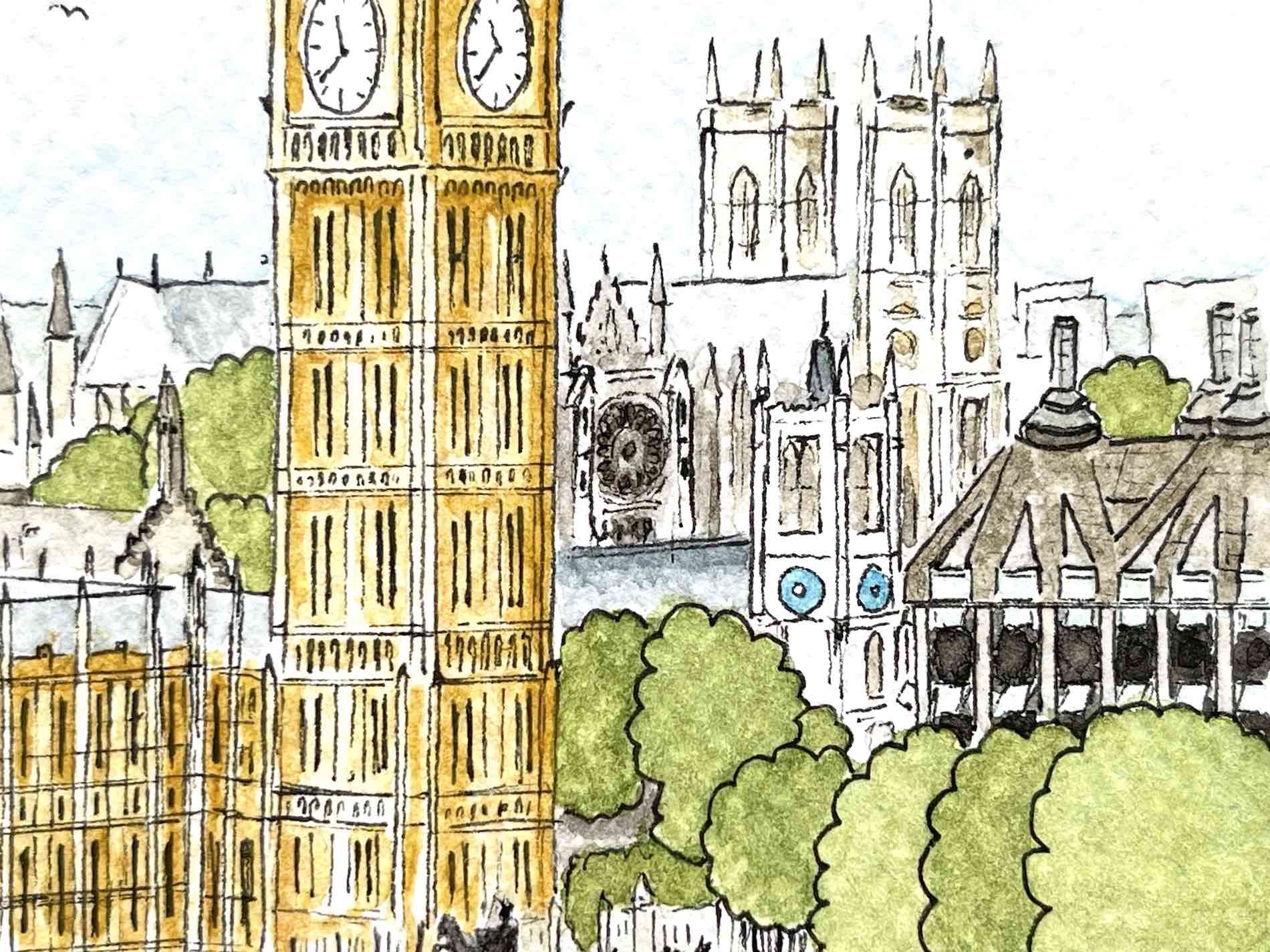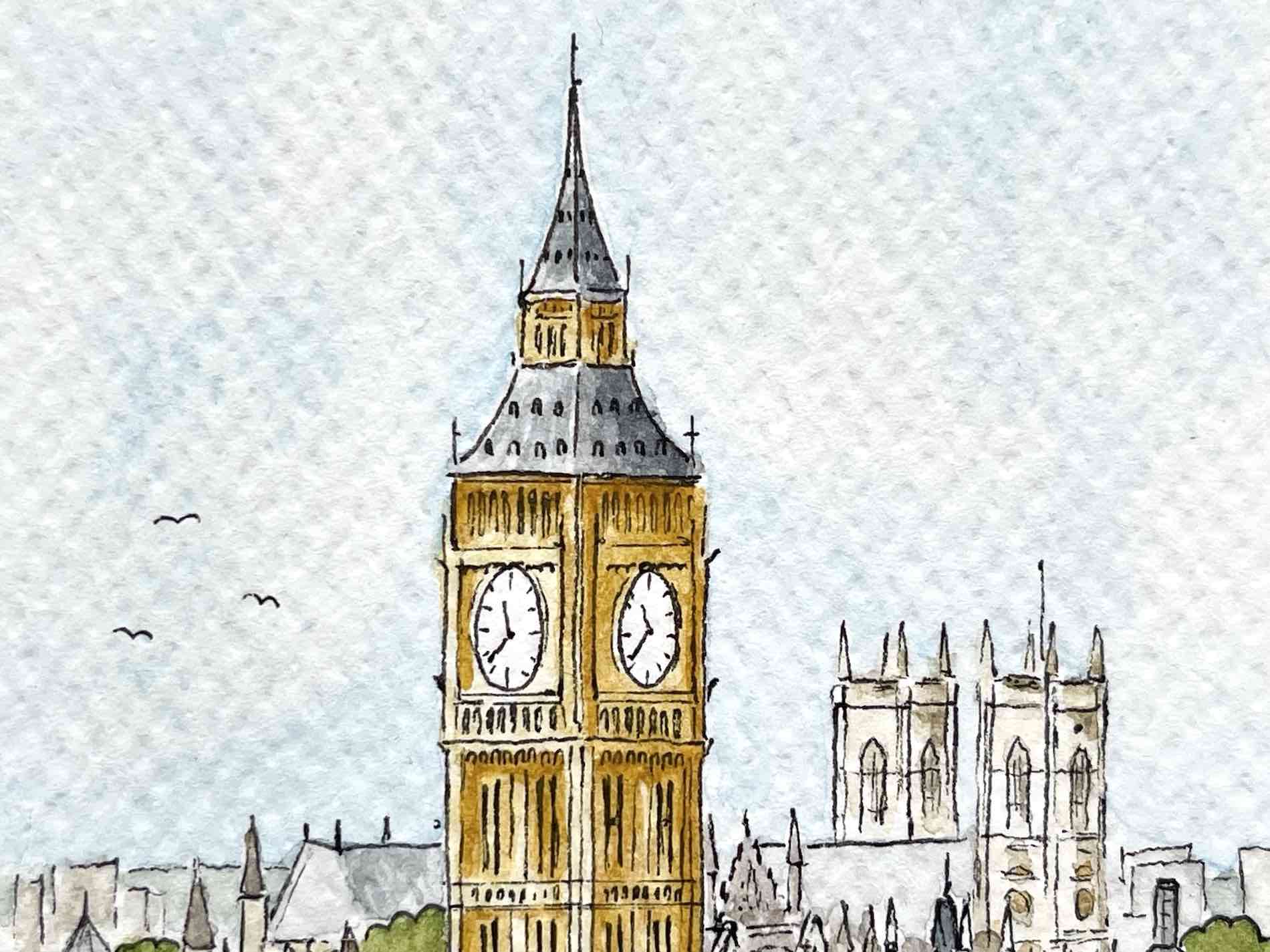 view of what is likely the most famous clock tower, commonly knowns as Big Ben This illustration is available as a bookmark. It can also be printed on various products.