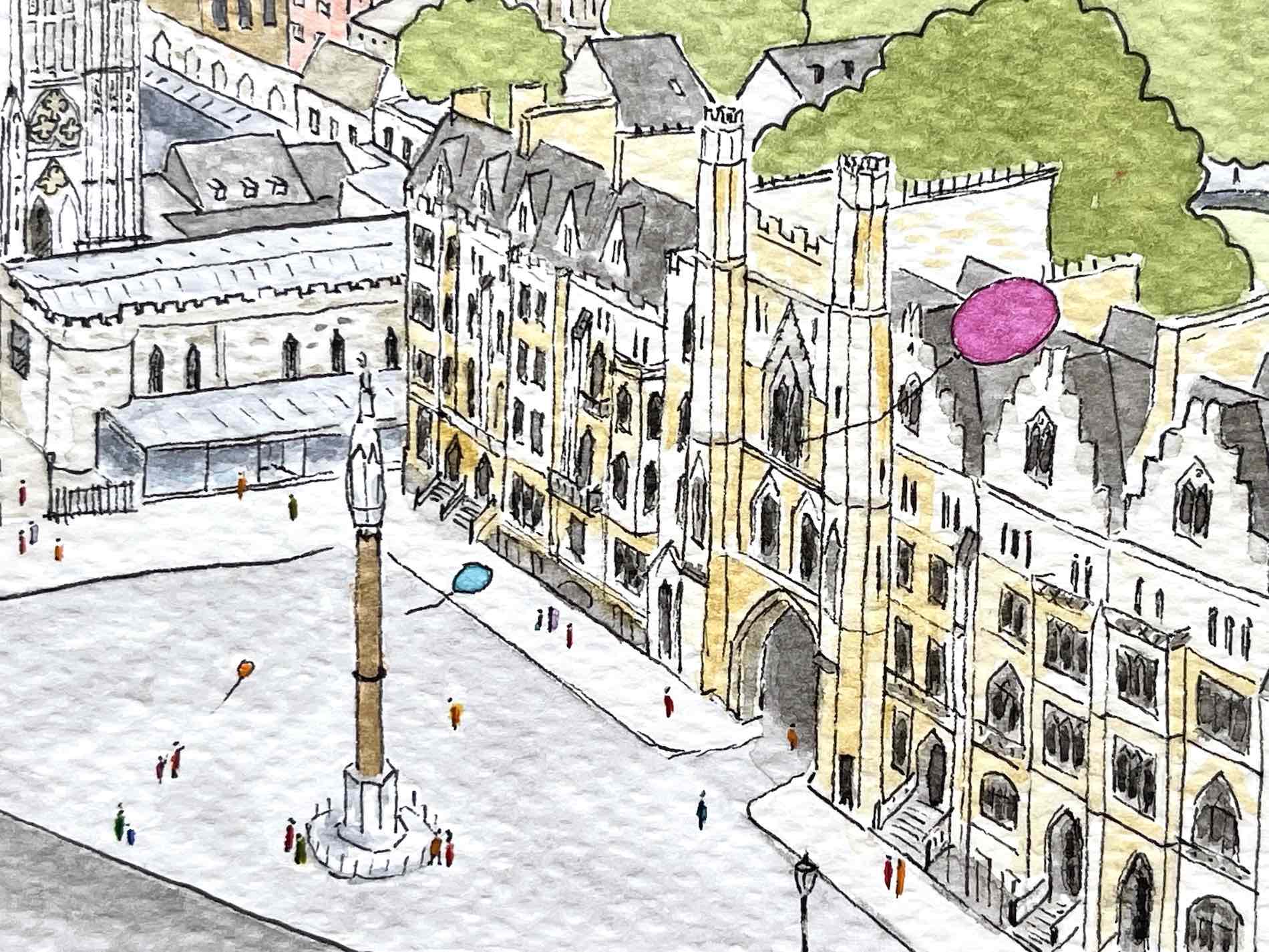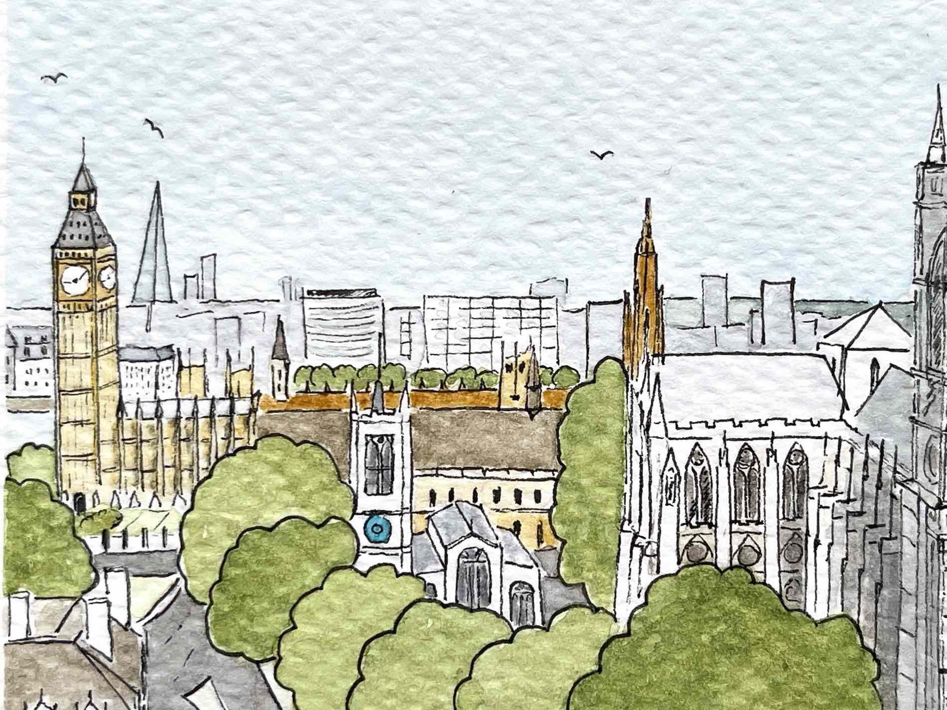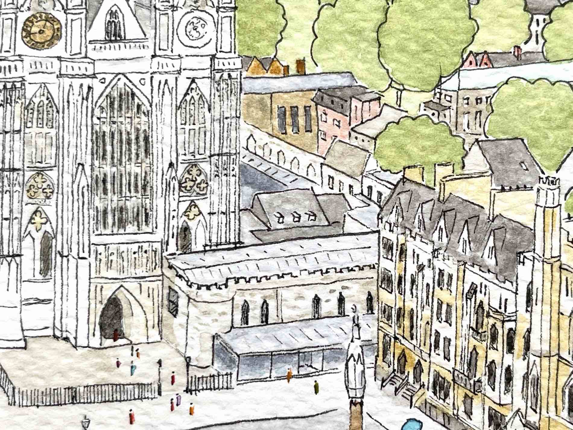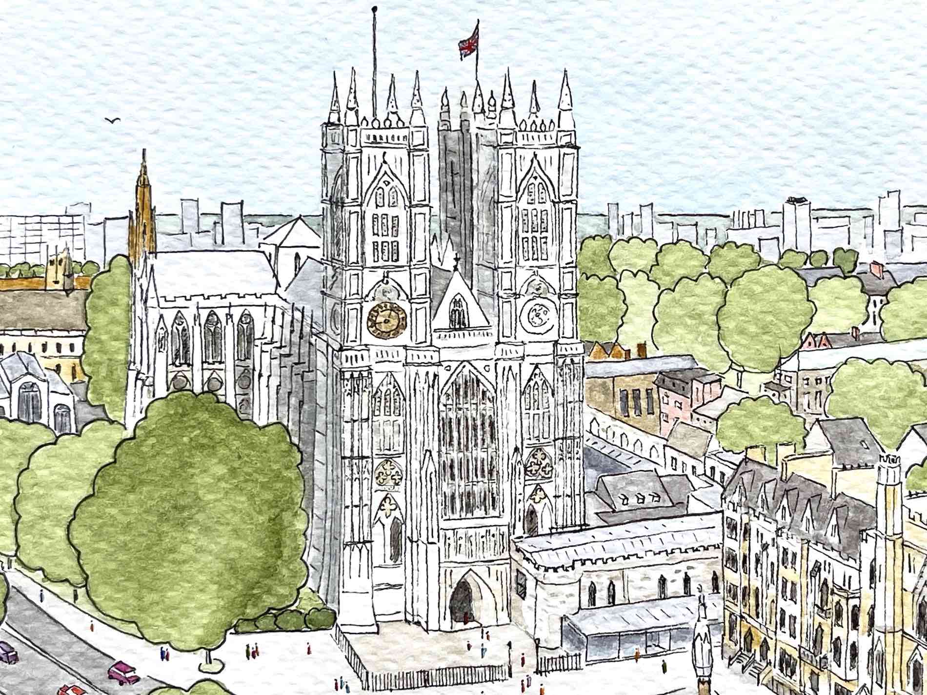 one of the most important Anglican churches. Nearly all kings and queens have been crowned here, and their remains rest here as well. The site contains the graves of over 3000 notable figures – scientists, poets, writers, musicians, actors… This illustration could become a poster, postcard or greeting card. It can also be printed on bags, pouches, make up bags and many other products.