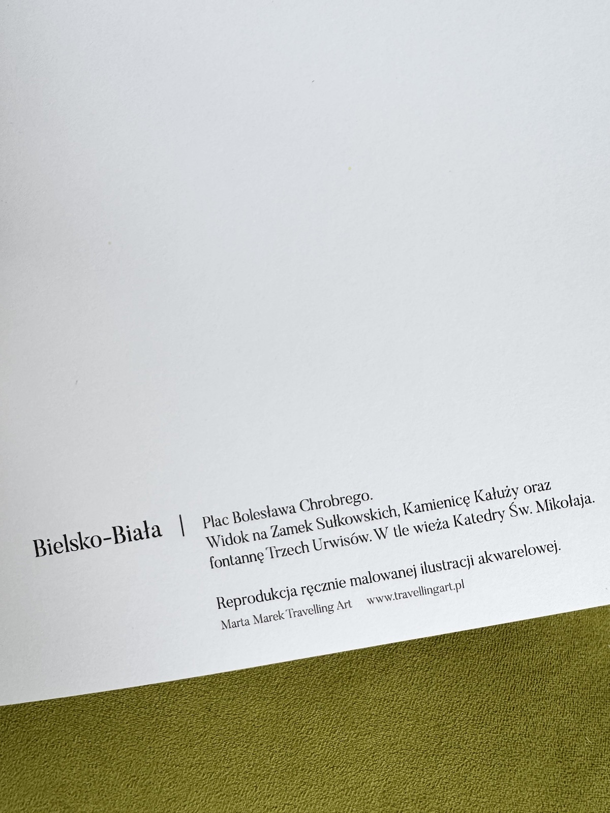 Drukowany jest na matowym, niepowlekanym, 300-stu gramowym papierze stworzonym z myślą o wydrukach reprodukcji artystycznych.