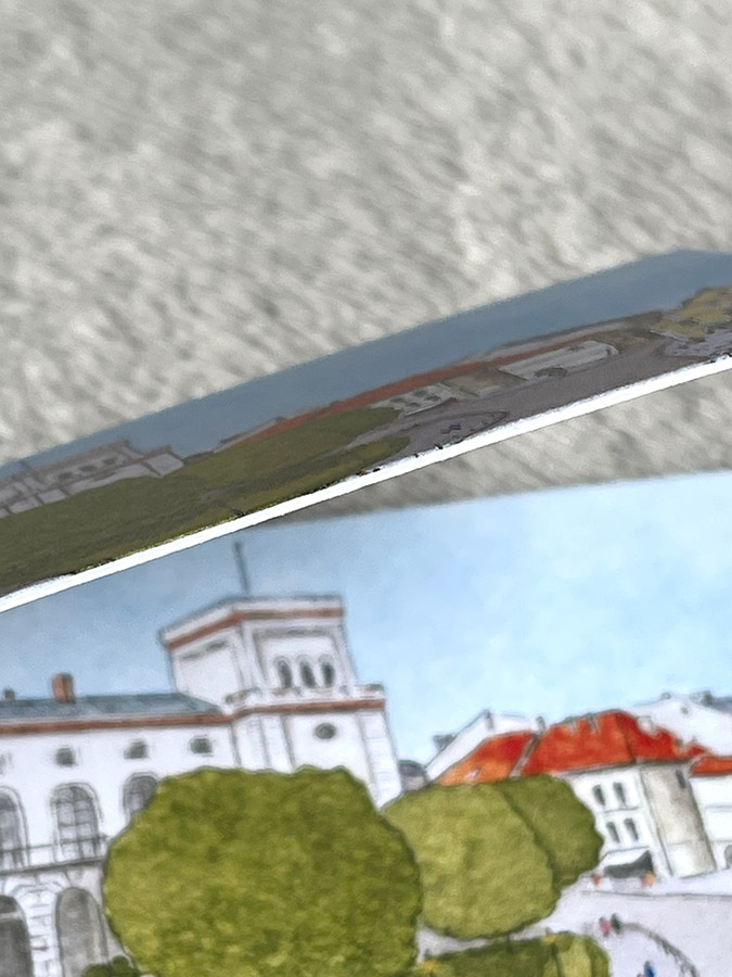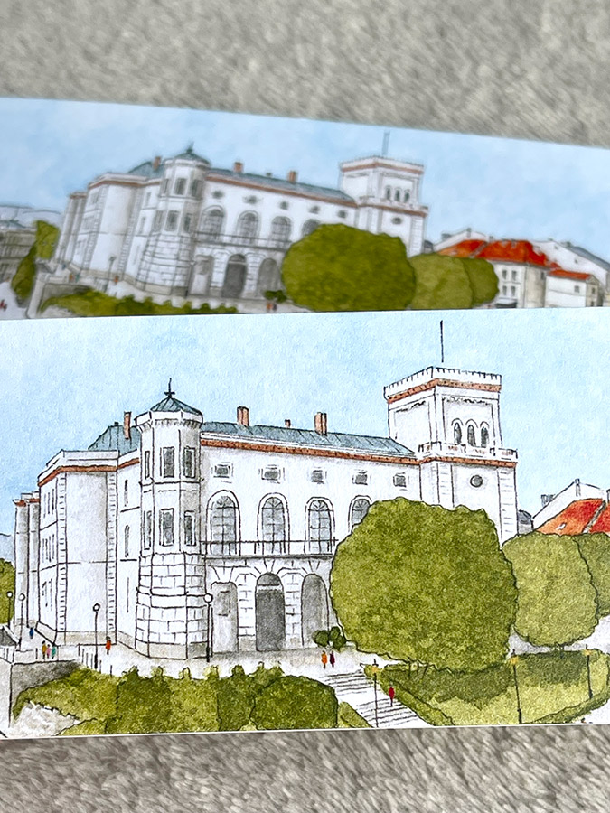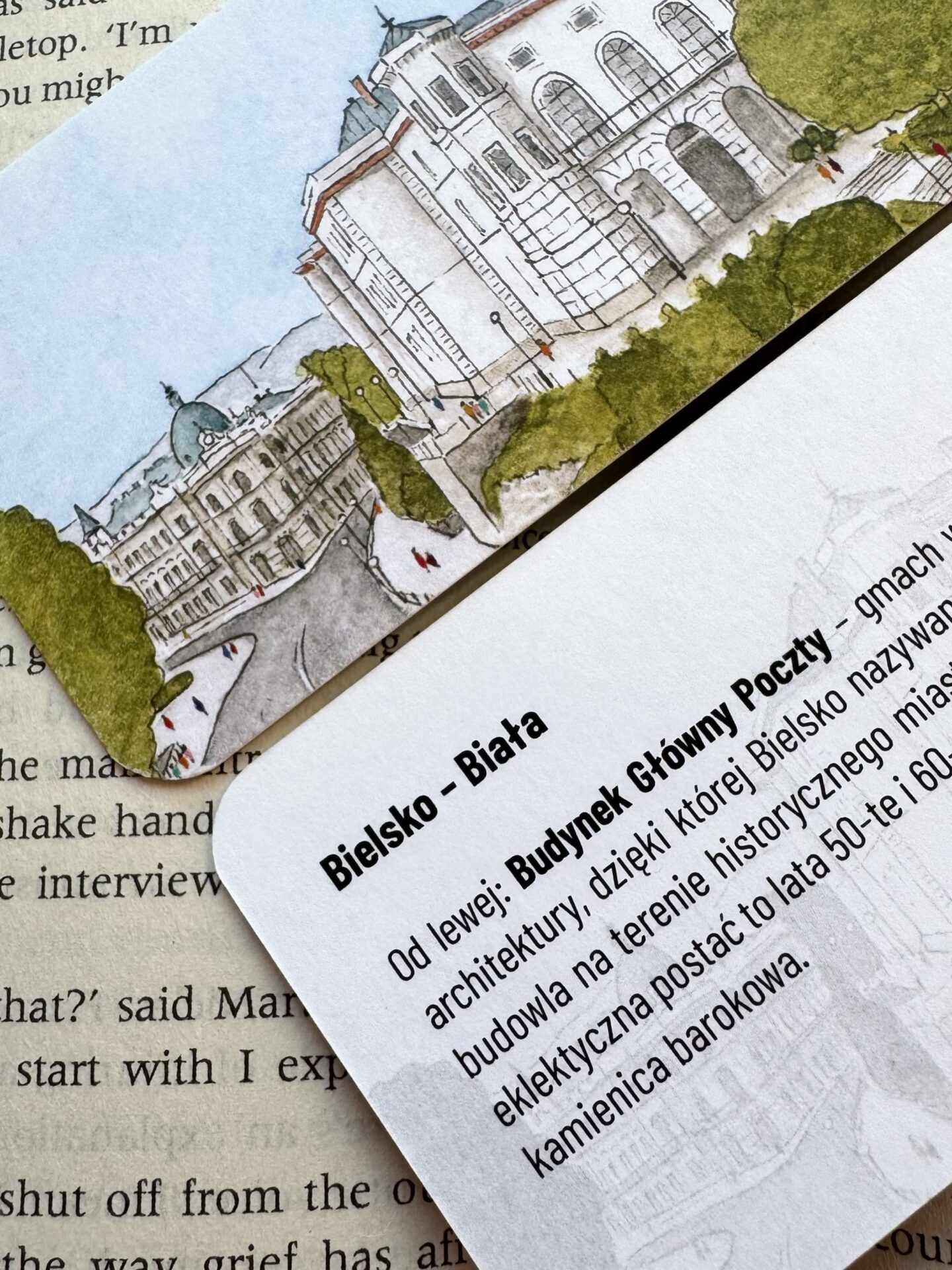 Widok na Bielsko-Biała: Budynek Poczty, Zamek Sułkowskich i Kamienicę Kałuży.