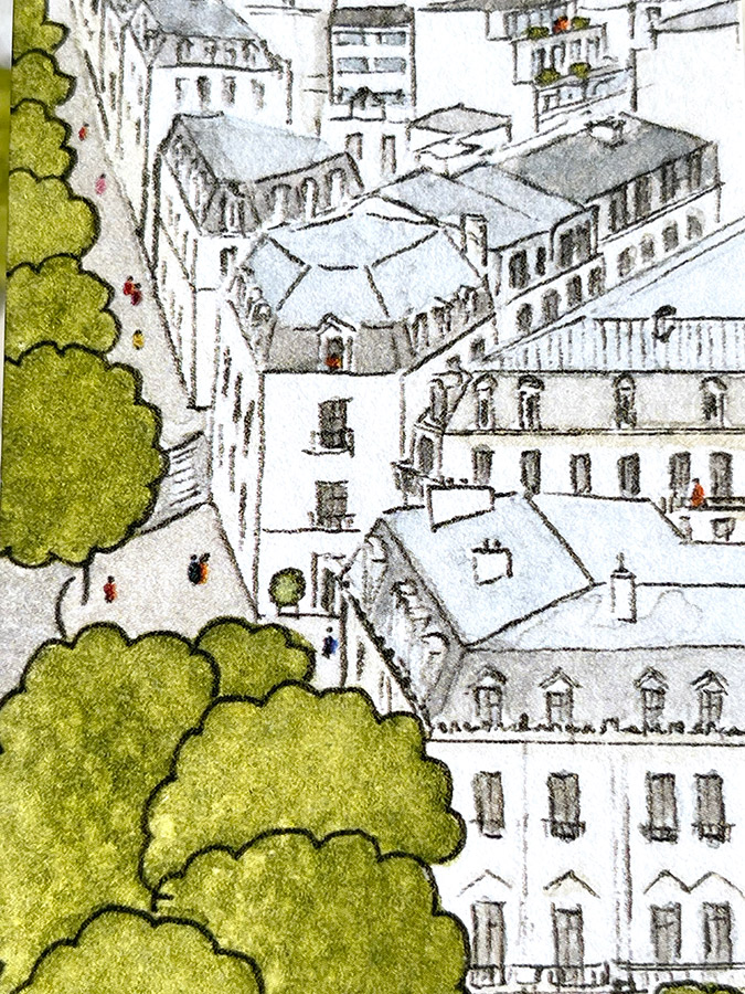 Wieża Eiffla widziana z tarasu widokowego, który znajduje się na dachu Łuku Triumfalnego.